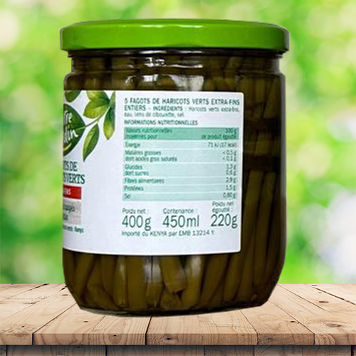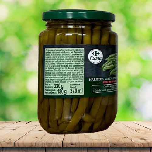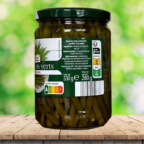 Canned green beans are processed through cleaning, sizing, blanching, packaging in jars or cans with brine and then hermetically sealing and thermally processing them to ensure preservation and shelf stability.